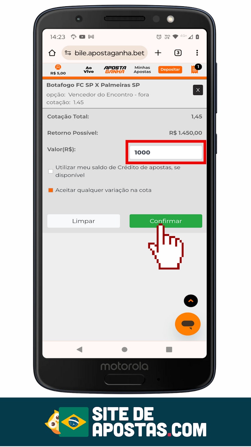 Para usar uma aposta grátis da Aposta Ganha você deve marcar essa opção do seu boletim de aposta. É muito importante que a aposta grátis já tenha sido creditada em sua conta. Depois, basta selecionar a odd do seu palpite e confirmar a aposta.