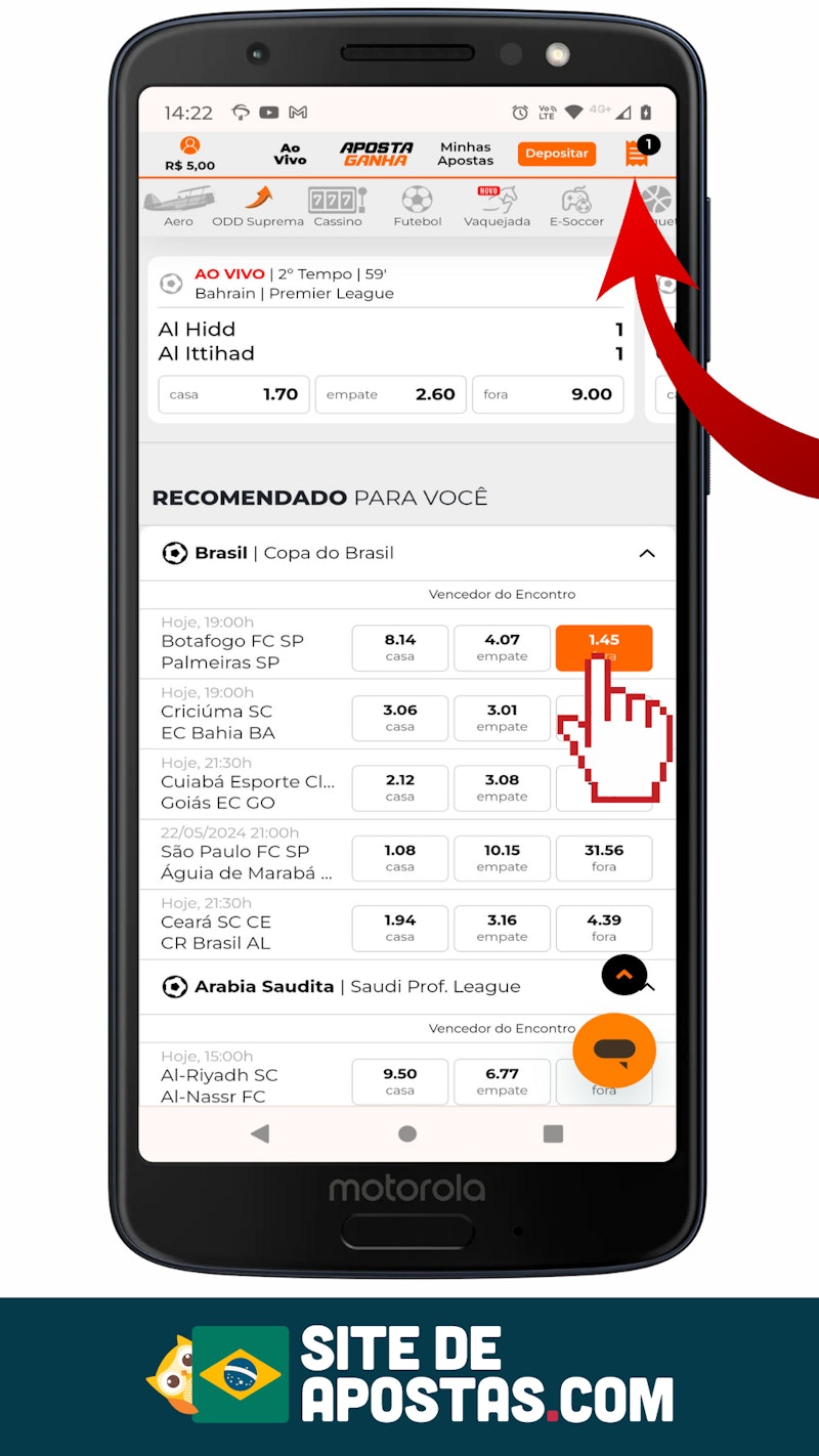 Você deve selecionar a odd para que o seu palpite vá para o seu bilhete de apostas.