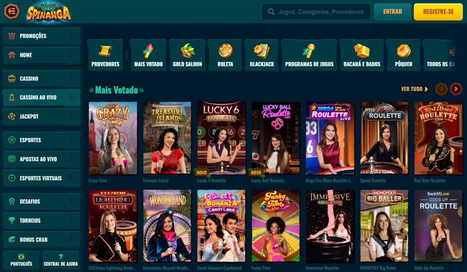 - Jogos disponíveis: slots, jogos de mesa, jogos rápidos, jogos virtuais, casino ao vivo, raspadinhas