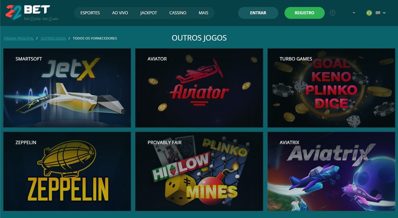 - Provedores de jogos: 62 (incluindo todos os grandes nomes da indústria)
