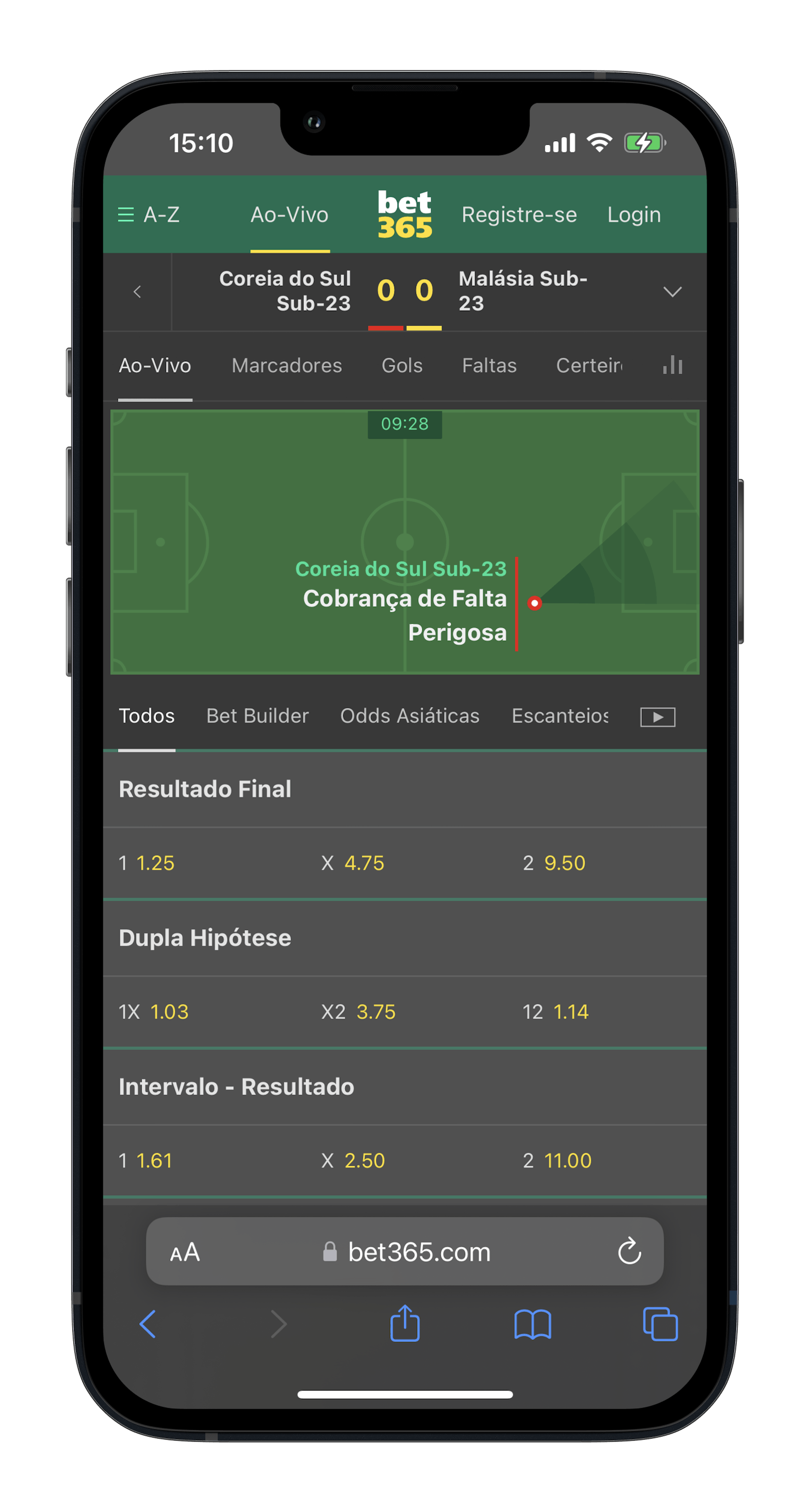 A Bet365 é também a melhor opção para apostas ao vivo graças à sua variedade de mercados de apostas disponíveis nas principais modalidades e fantástica ferramenta de livestreaming.