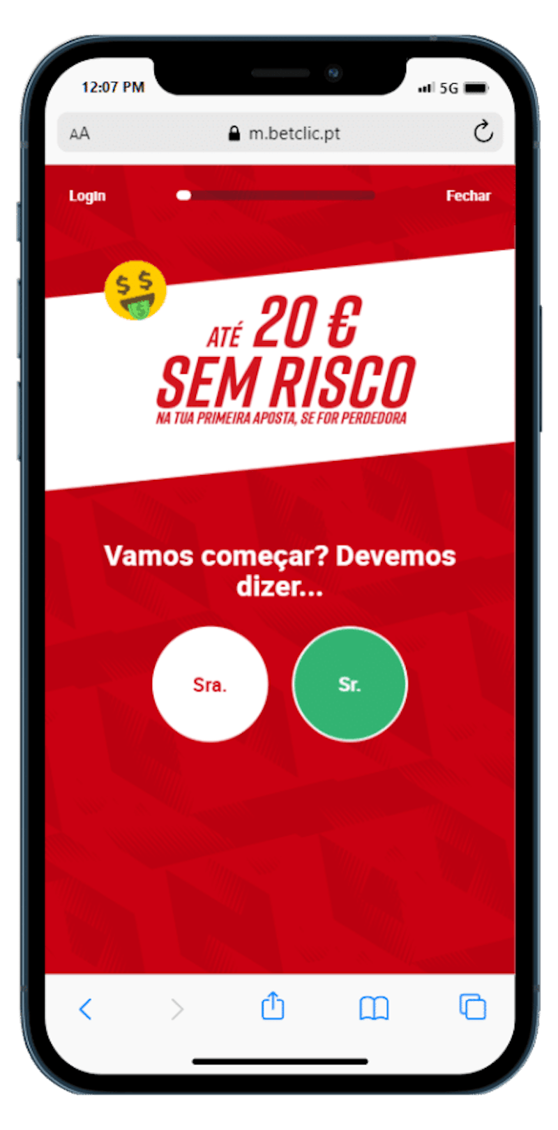 O processo de registo pode ser feito em menos de 2 minutos - basta preencher os campos do formulário com as informações pessoais solicitadas e avançar. O formulário de registo da Betclic é ligeiramente diferente do habitual e bastante user-friendly.