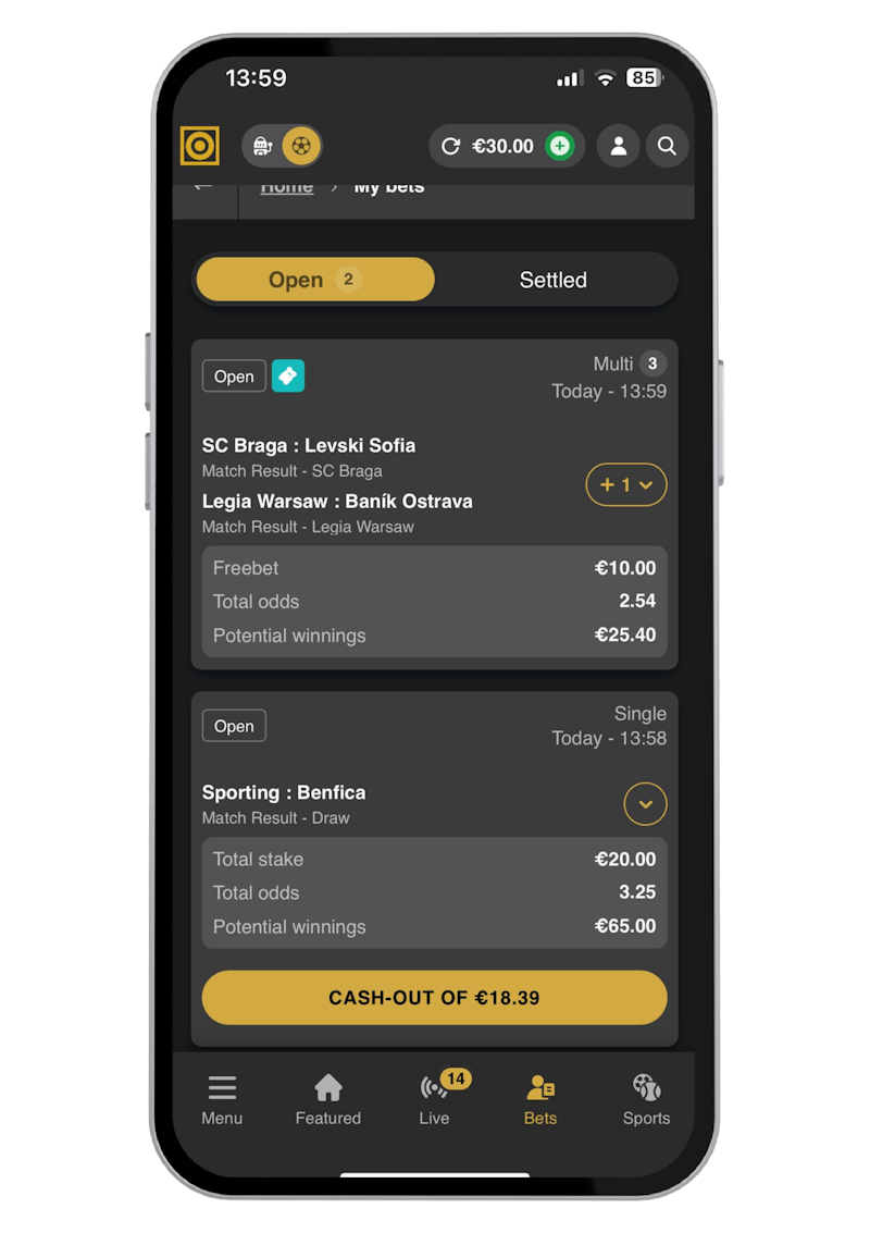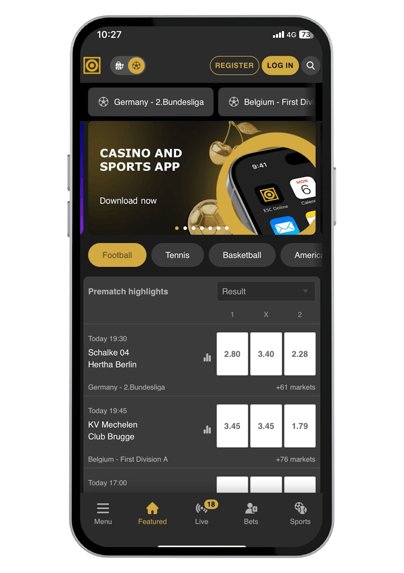 ESC’s mobile app is modern, smooth, and intuitive, making it easy to bet or play wherever you are.