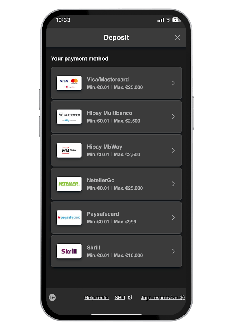 Payments are fast and straightforward, especially if you’re already using MB WAY, Portugal’s most popular instant payment method. But even if you’re not, credit/debit cards, Neteller, and Skrill are all supported, so you can handle everything without hassle.