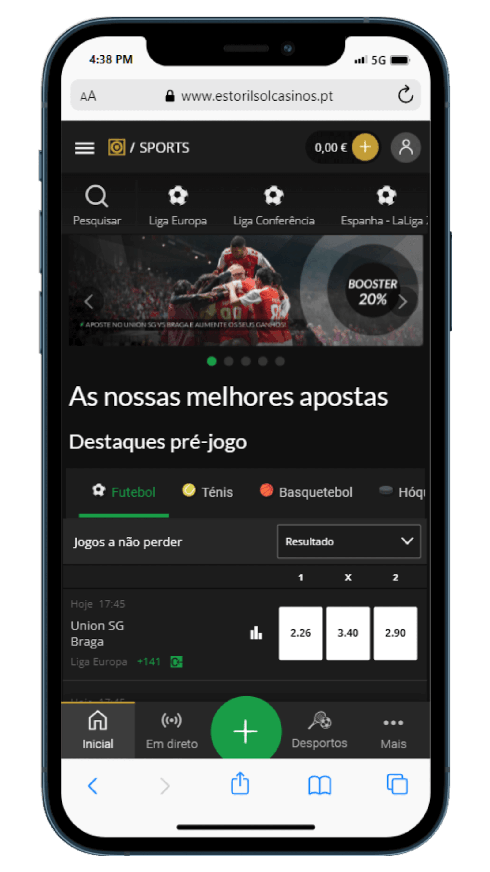 - Bónus primeiro depósito: faz o primeiro depósito e recebe até 250€ em freebets.