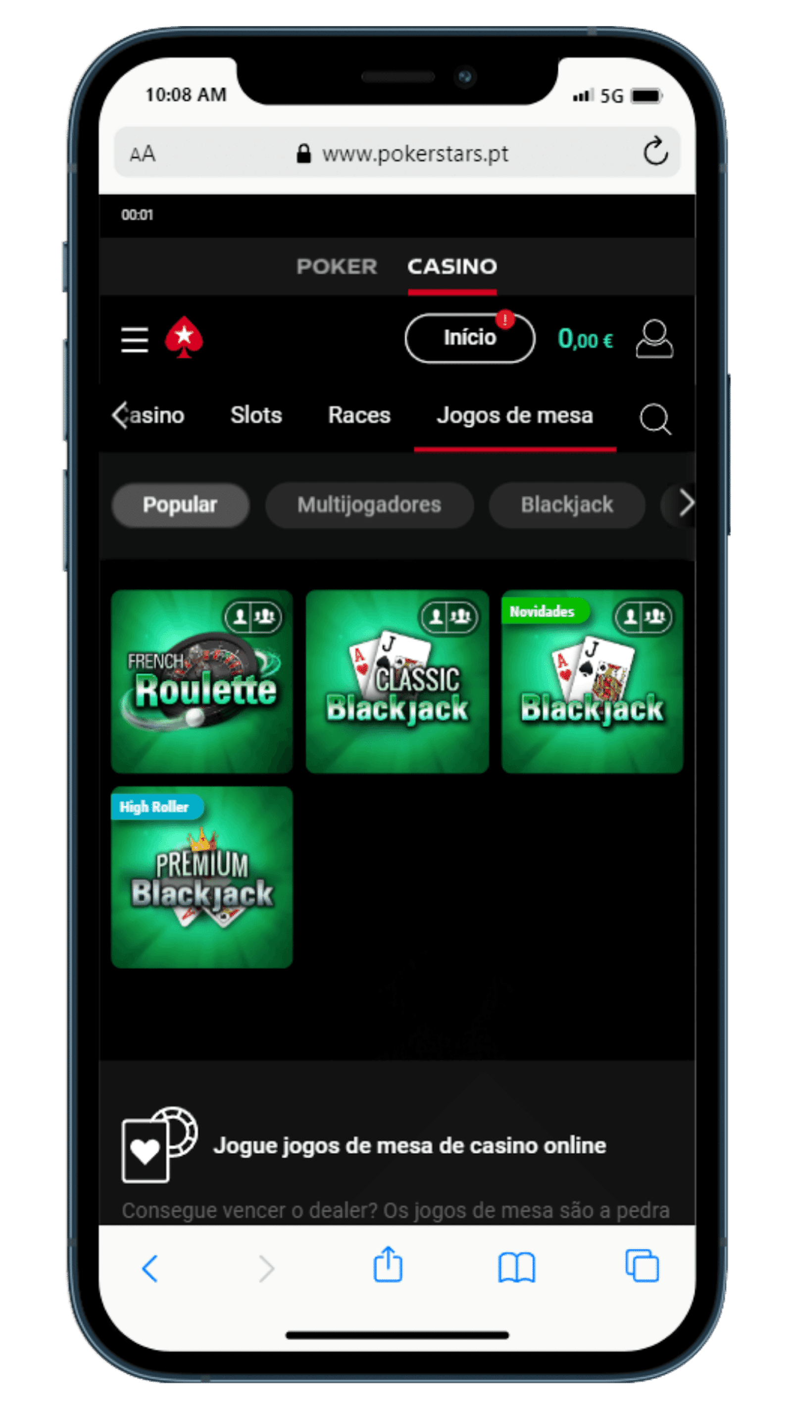 A app Pokerstars casino e poker surpreendeu a nossa equipa pela sua versatilidade, rapidez e facilidade de navegação. Os utilizadores podem também utilizar a versão mobile do site da Pokerstars para jogar no casino.