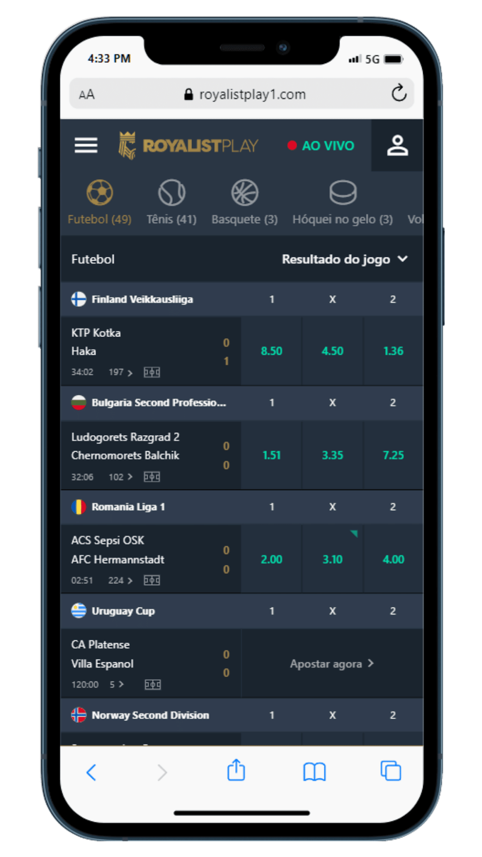 Na RoyalistPlay, os novos jogadores podem escolher entre o bónus de apostas desportivas e de casino. Como já é habitual, o bónus de casino tem um valor maior, mas o seu rollover e depósito mínimo também são maiores.