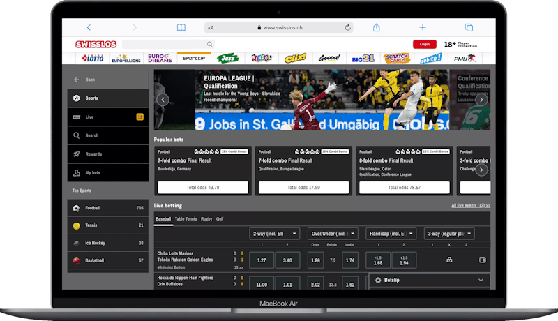 A Swisslos é conhecida no país por operar as lotarias. A plataforma de apostas tem evoluído ao longo do tempo, sendo que recentemente até implementaram as funcionalidades de cashout, livestream e criador de apostas. Iremos acompanhar para ver se esta opção se aproxima dos sites internacionais em termos de qualidade.